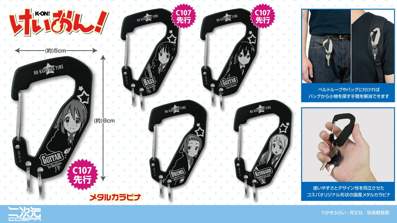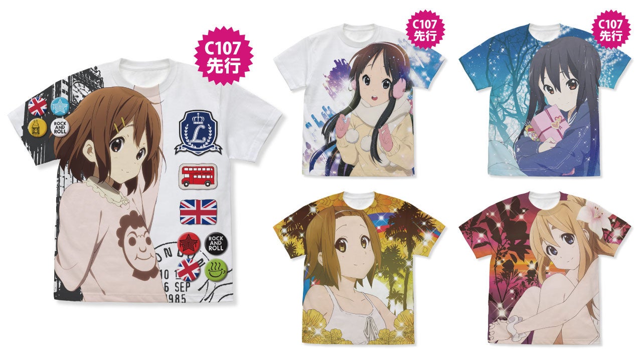「平沢唯」たち放課後ティータイムの5人それぞれの「フルグラフィックTシャツ」「パスケース」などが二次元コスパから登場。