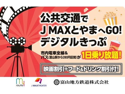 富山駅から J MAX THEATERとやまへお得に行けて、映画も特別料金で楽しめる公共交通セットチケットです。