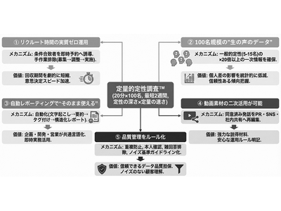 定性の“深さ”と定量の“速さ”を両立。リクルート工程大幅削減の予約導線と自動要約で、新商品企画・定量補完・社内合意形成を支援