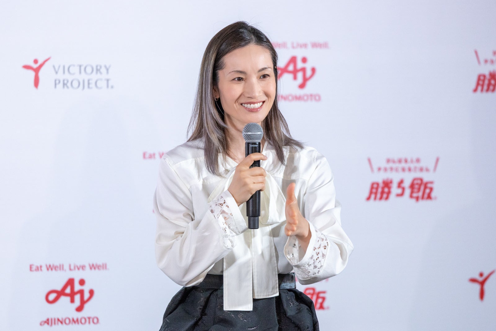 ビクトリープロジェクト(R)の最新のサポートについて聞かれた荒川氏は「アスリートにとって食事はとても大事。リラックスできる空間の中で、安心して食事をとれることは、試合に集中して臨むことにも繋がります。ビクトリープロジェクトはアスリートの“こころとからだ”の大きな支えてとなっており、すごく進化しているなと感じます。」とコメント。