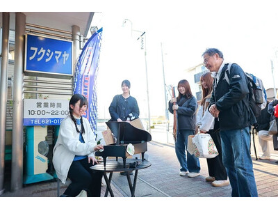 名鉄鳴海駅前で開催された“誰でも弾けるおもちゃのピアノ”。