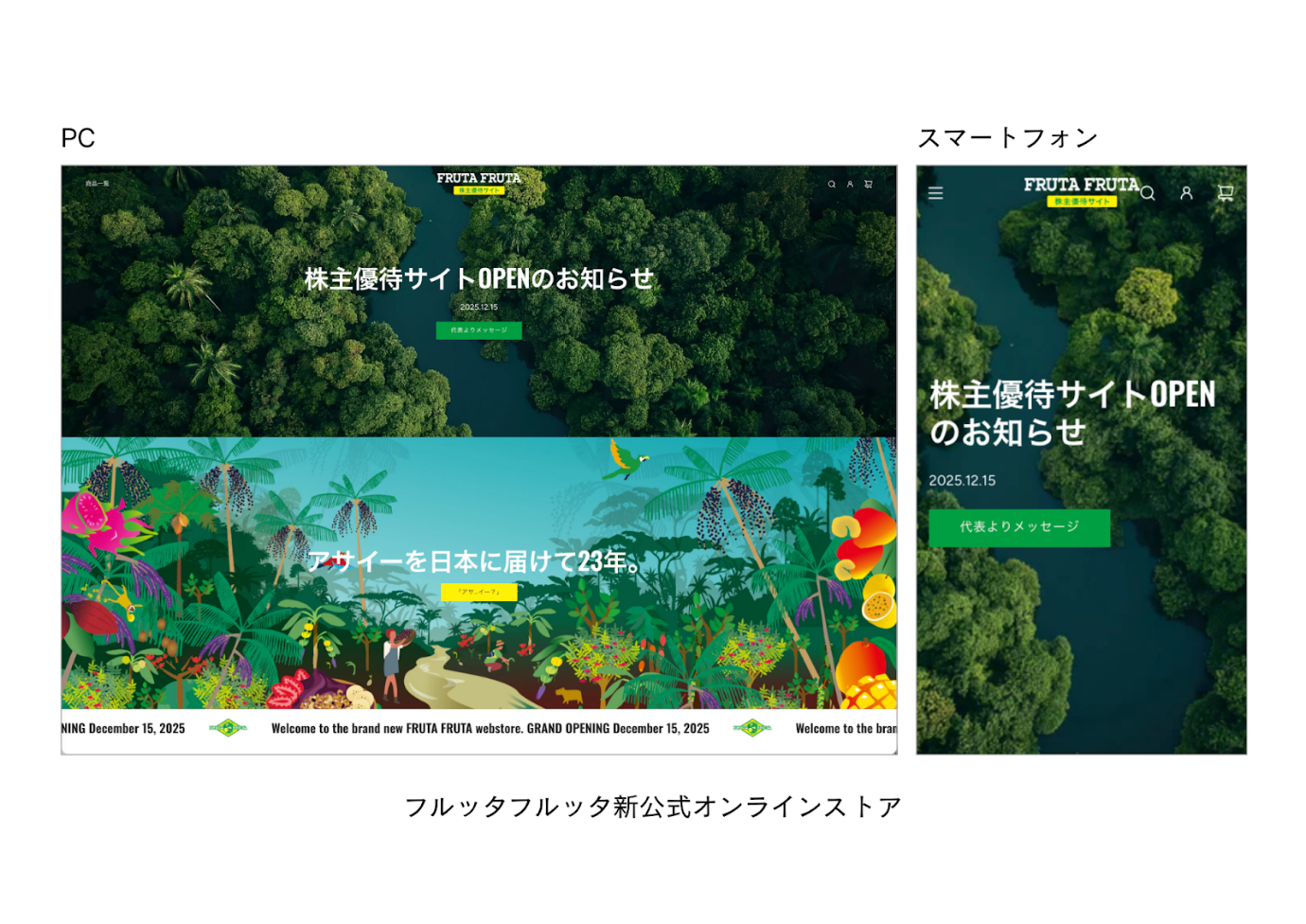 この度、2025年12月15日(月)に株主様専用の「株主優待ショッピングサイト」(以下、「株主優待ショッピングサイト」)を公開いたしますので、下記のとおりお知らせいたします。