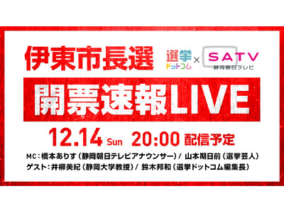 選挙ドットコムは「伊東市長選開票速報LIVE」を12月14日(日)20時から公式チャンネルで生配信!