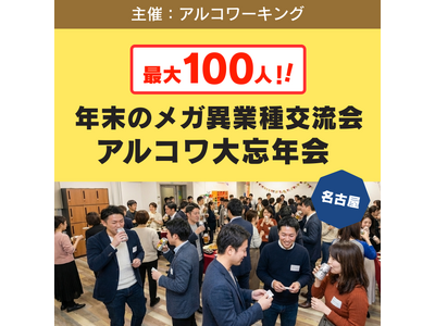 最大100人参加の年末のメガ異業種交流会「アルコワ大忘年会」が、愛知県名古屋市で開催されます(12月26日)。ビジネスの協業相手や人材探し、情報交換ができるイベントです。