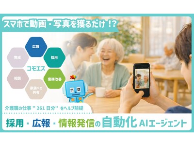 株式会社No.K(コモエス)は、写真や動画をアップロードするだけで、採用・広報・情報発信といった外向き業務を自動で行う、介護業界向けAIエージェントアプリの開発に着手しました。