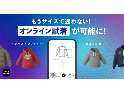 「SNKRDUNK(スニーカーダンク)」(以下、スニダン)を運営する株式会社SODA(本社:東京都渋谷区、代表取締役CEO:内山 雄太、以下SODA)は、2025年12月15日より、オンライン上で精度の高いバーチャル試着体験を提供する「Virtusize(バーチャサイズ)」(株式会社Virtusize 本社:東京都港区、代表取締役:上野 オラウソン・アンドレアス)を導入し、スニダンでアパレル商品におけるオンライン試着機能の提供を開始いたします。(※1)