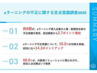 株式会社イー・コミュニケーションズ(本社:東京都港区、代表取締役:佐藤信也)は、eラーニング研修を導入している企業の人事・総務担当者100名を対象に、eラーニングの不正に関する定点意識調査2025を実施しましたので、お知らせいたします。