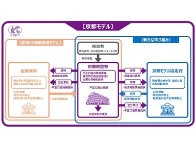 京都モデルとは、京都府警察と協定行がリアルタイムで情報を共有することで、詐欺に利用された口座や詐欺被害者を迅速に特定する仕組みです。