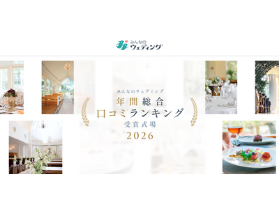 株式会社くふうウェディング(くふうカンパニーグループ)は、ウェディング総合情報サイト「みんなのウェディング」にて、2024年10月1日~2025年9月30日の1年間を通して先輩カップルやゲストから高評価を得た結婚式場を表彰する「年間総合 口コミランキング 受賞式場 2026」を発表いたしました。