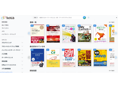 技術書籍であれば、最新の知識・開発言語を体系的に学ぶことが可能です。「TechLib」は、幅広いジャンルをカバーした技術書籍の読み放題サービスに加え、将来的には書籍の多彩な検索や映像による解説など、ITエンジニアのスキルアップに、さらにはITエンジニアを目指してスキルを身に付けたい人にとって、より実践的な学習体験を提供してまいります。