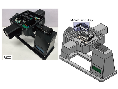 芝浦工業大学 生物微小流体工学研究室で開発されたマイクロ流体細胞培養系を搭載した3Dクリノスタット
