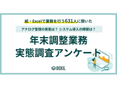 SaaS比較サイト「BOXIL」を運営するスマートキャンプ株式会社(本社:東京都港区、代表取締役社長CEO:林 詩音)は、年末調整業務に関わっている2,439人を対象に事前調査を行った後、「紙」または「Excel・スプレッドシート」で年末調整を担当する631人を対象に「年末調整業務の実態調査(以下、本調査)」を実施しました。