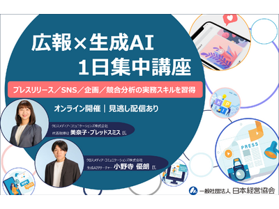 一般社団法人日本経営協会(所在地:東京都渋谷区、会長:高原 豪久)は、2026年2月3日(火)に「広報担当者のための生成AI活用講座」を開催します。