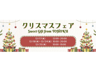 JR東日本東北総合サービス株式会社(本社:宮城県仙台市、代表取締役社長:弭間 俊則)は、JR仙台駅2階東西自由通路において、「クリスマスフェア Sweet Gift from TOHOKU」を開催します。東北各地のお店から厳選したクリスマスにぴったりの特別なスイーツやリキュールをお届けします。