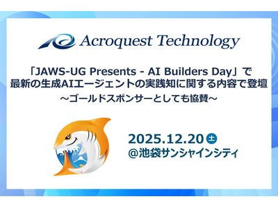 JAWS-UG Presents - AI Builders Day」(主催:JAWS-UG)において、生成AIを活用したAIエージェント開発に関する最新の実践知を紹介するセッションに、当社シニアテクニカルアーキテクトの鈴木貴典が登壇します。また、本イベントにはゴールドスポンサーとしても協賛し、コミュニティの発展を支援します。
