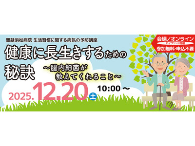 社会福祉法人聖隷福祉事業団 総合病院聖隷浜松病院(静岡県浜松市)は、生活習慣に関する病気の予防講座「健康に長生きするための秘訣」を開催します。