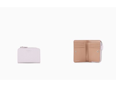 柔らかな光沢を湛えたディアスキン仕上げのイミテーションレザーが、手元にさりげないエレガンスを添える二つ折りウォレット。