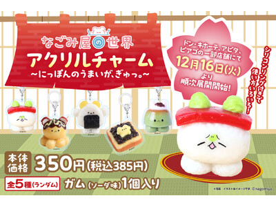 2025年12月16日(火)から、ドン・キホーテ、アピタ、ピアゴの一部店舗にて、『なごみ屋の世界』のガム入りアクリルチャームを順次販売します。