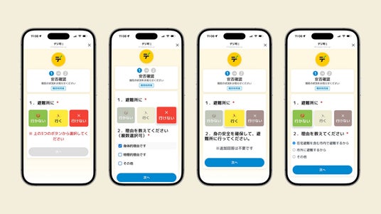住民がLINEを通じて受信する安否確認メッセージに対し、選択肢形式で回答することで、災害時の安否状況を迅速に収集・集約する仕組みを検証します。