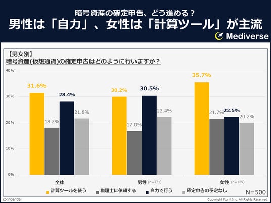 男女別に見ると、確定申告の進め方には、ジェンダー差が見られた。
