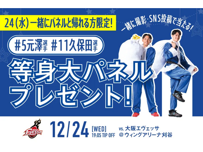 等身大パネル展示品を12月24日(水)の試合後にプレゼント!