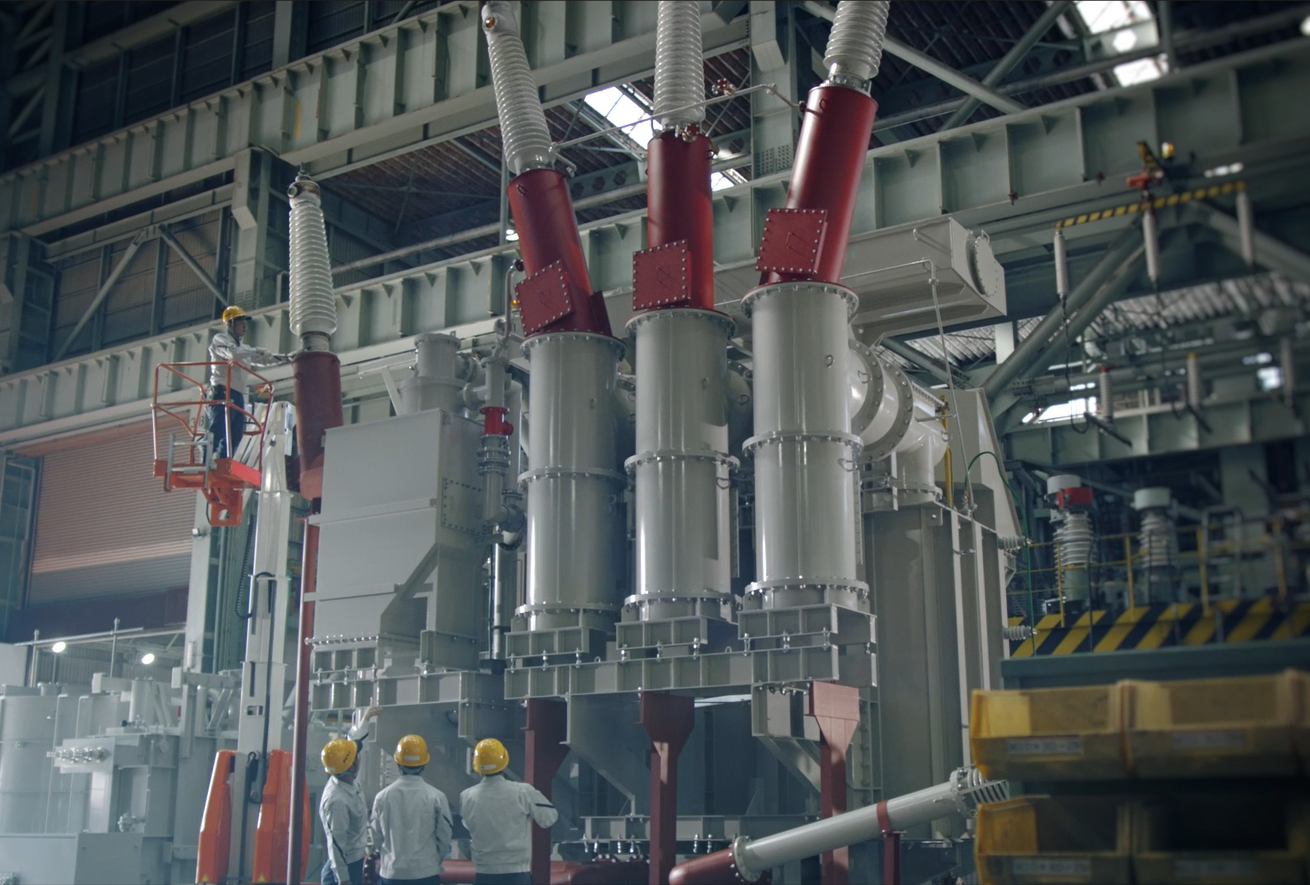 電力会社の設備更新に加え、再生可能エネルギーの拡大やデータセンター・半導体工場の建設増加に伴い、変電所機器の需要が高まっています。これを受け、当社は三重事業所構内に新工場を建設し、大形変圧器の生産能力を 2029 年度までに 2 倍に増強します。