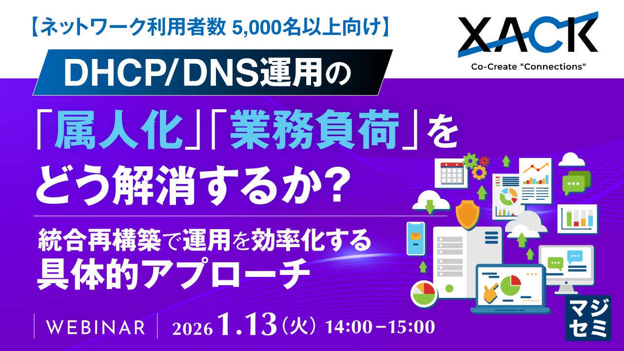 マジセミ株式会社は「DHCP/DNS運用の「属人化」「業務負荷」をどう解消するか?」というテーマのウェビナーを開催します。