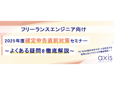 株式会社MCEAホールディングス(東京都港区/代表取締役社長 齋藤 武育)のグループ会社で、 ITエンジニアの新しい働き方を提案する株式会社PE-BANK(東京都港区/代表取締役社長 高田 幹也)は、2026年1月8日(木)19時より、ウェビナー『 2025年度確定申告直前対策セミナー ~よくある疑問を徹底解説~ 』を開催します。本セミナーは、株式会社PE-BANKが運営するITフリーランス向け福利厚生サービス「サポートプラス」が主催しており、今回で71回目の開催となります。今回は、オンライン形式での開催となります。