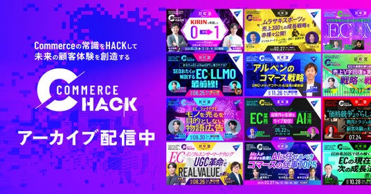 「Commerce Hack」は、commerce の常識を hack し、未来体験を創造することを目指す EC・リテール業会向けメディアです。メーカーや小売業、EC 支援企業のキーパーソンをお招きし、企業戦略や成功体験を“裏話”とともに共有します。開始から約1年でリアルタイム参加1,000名を超え、多くの視聴者から高い評価をいただいています。