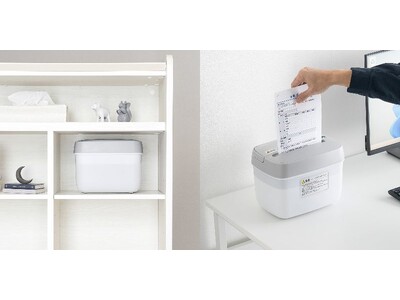 シンプルでマットな質感の本体は、デスクに置いた瞬間に空間に馴染むデザイン。「隠すシュレッダー」ではなく、置きっぱなしでも見栄えが良い“魅せる文具”として活躍します。デスク周りの雰囲気を損なわず、必要なときにすぐ使えるストレスフリーさは、テレワークや省スペース化が進む現代の働き方にぴったりです。