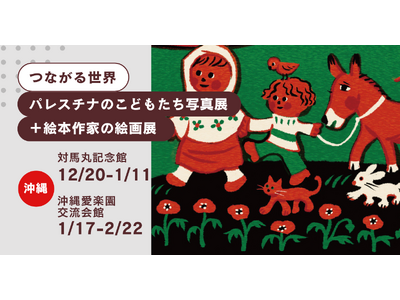 絵本作家による絵画作品と、パレスチナのこどもたちの写真が並ぶ展覧会です。