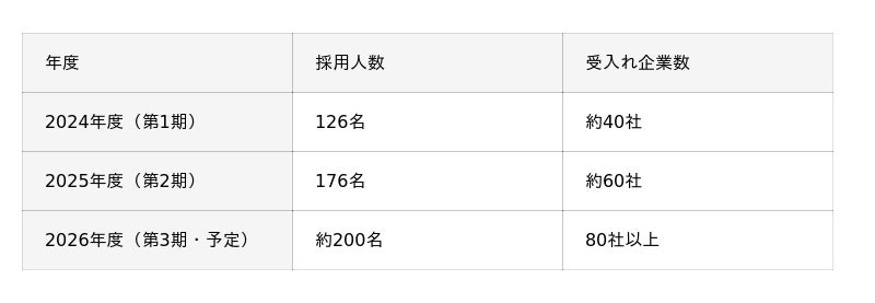 採用人数、受入れ企業数は毎年増加しています。受入れ企業からは、「若手が入ることで職場の雰囲気が明るくなった」といった声も寄せられています。また、大学や専門学校のキャリアセンターとの連携も進み、「新卒派遣」からキャリアをスタートするという選択肢として、学校関係者からの相談・紹介も増えています。