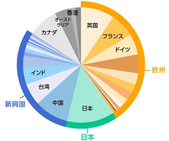 ※構成比率:欧州が約40%、日本が約14%、新興国が約27%(2025年9月末時点)
