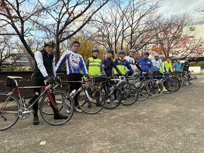 パナソニック サイクルテック社員やゲストを交えての挨拶・準備運動後、荒川沿いを走る約45 kmのライドに出発。途中サイクリスト間では有名なフォトスポットである彩湖の水辺のステージ(通称ニョロニョロ)や、芋ようかんが有名な舟和、サイクリストの憩いの場であるソフトクリーム店 KURUなどへの寄り道を楽しみながら、オーナー様同士や、ゲスト・社員との交流を深め、全員完走することができました。