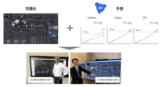 NECは「クライアントゼロ(ゼロ番目の顧客)」と位置づけ、AIを含む最先端技術を活用し、企業変革のモデルを構築。その成果を顧客にも展開しており、経営ダッシュボード「経営コックピット」へのAI導入もその一つです。これにより、実績値の可視化だけでなく業績予測を取り込み、迅速な意思決定と先を見据えた手を素早く打つことが可能です。