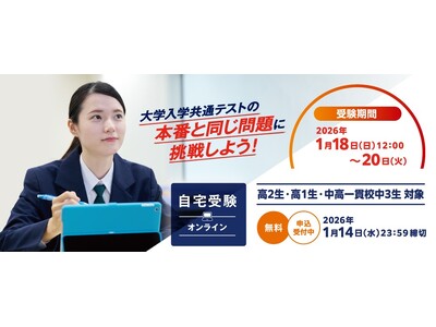 河合塾は、「大学入学共通テスト」の本番の問題に高1・2生、中高一貫校中3生が挑戦するイベント「大学入学共通テストチャレンジ」を2026年1月18日(日)から20日(火)に開催します。自宅にいながら受験できるWeb受験形式で挑戦できます。