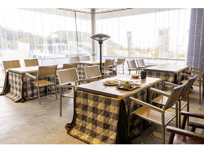 冬の澄んだ空気や景色を楽しみながらも、寒さを気にせず快適に過ごしていただけるよう、温かいこたつを導入。屋外ならではの開放感と、日本ならではの温もりを融合させた新しいスタイルのテラス席です。