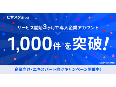 「知見と、挑戦をつなぐ」をミッションにグローバルなナレッジプラットフォームを運営する株式会社ビザスク(以下、当社)は、2025年9月に提供を開始した、多様な「知見」を起点にした新たな人材マッチングサービス「ビザスクdirect」の導入企業アカウントが1,000件を突破したことをお知らせいたします。