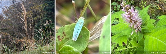 オナガフキバッタ、オオヨコバイ、オオカマキリ、アシグロツユムシ、ススキ、オオマルバノテンニンソウ、セイタカアワダチソウ、イヌザンショウ、ウナギツカミ
