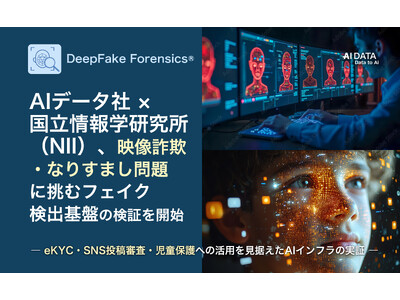 企業データとAIの利活用カンパニー、AIデータ株式会社(本社:東京都港区、代表取締役社長 佐々木隆仁、以下AIデータ社)は、国立情報学研究所(NII)が開発したフェイク映像検出AI「SYNTHETIQ VISION」を基盤技術として活用し、eKYC・SNS・児童保護などのユースケースを想定した「フェイク映像検出基盤」を社内環境に構築し、その有効性や運用方法に関する検証を開始しました。