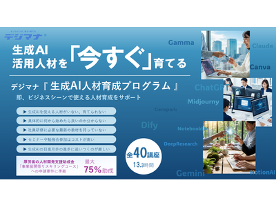 株式会社新東通信(本社:東京都中央区、愛知県名古屋市 代表取締役社長:谷 鉃也、以下「新東通信」)は、共同ピーアール株式会社(本社:東京都中央区 代表取締役:石栗 正崇)が運営するオンライン学習プラットフォーム「デジマナ」にて 『生成AI人材育成プログラム』 を2025年12月16日に開設しました。
