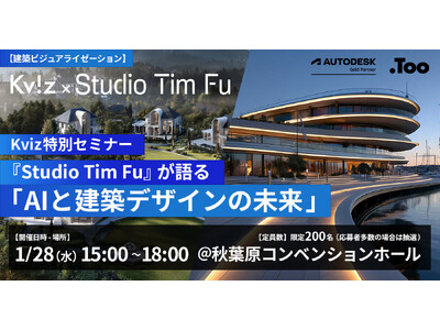 クリエイティブ市場の総合商社・株式会社Too(本社/東京都港区虎ノ門3-4-7、社長/石井剛太、以下Too)は、2026年1月28日(水)秋葉原コンベンションホールにてKviz特別セミナー「Studio Tim Fuが語る、AIと建築デザインの未来」を開催します。