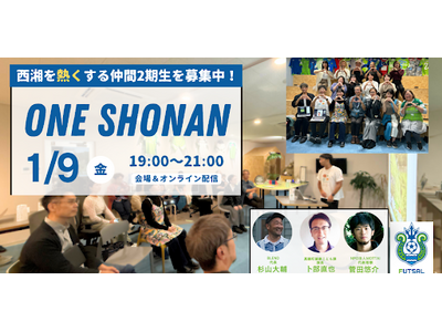 (株)湘南ベルマーレフットサルクラブ(本社:神奈川県小田原市、代表取締役社長:佐藤伸也)は、全国のプロボノ人材と西湘地域で活躍するイノベーターが連携し、事業創出・運営に取り組むプロジェクト「ONE SHONAN」を今年10月10日より開始しました。1期のプロジェクトメンバー25名が全国から集い、オンライン会議などを活用して打ち合わせを行ってきました。活動の中間報告会ならびに1期生と共に活動する2期生も交えての集いを2026年1月9日(金)19時~本社オフィスB1にて開催します。2期生の申し込みはこちらより受け付けています。
