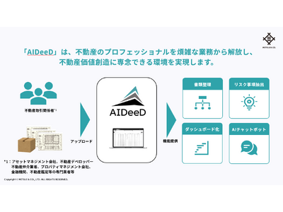 三井物産株式会社(本社:東京都千代田区、社長:堀 健一、以下「三井物産」)は、生成AIを活用し、不動産取引・運用業務の高度化・自動化を実現するプラットフォーム「AIDeeD」を開発しました。2024年より実証実験を実施し、不動産取引における一連の業務において、大幅な効率化を確認しました。本実証で得られた知的財産についての特許出願を完了し、2026年春から本格提供を予定しています。