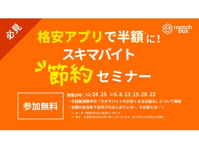 株式会社Matchbox Technologies(本社:新潟県新潟市中央区、代表取締役社長:佐藤 洋彰、以下当社)は、2025年12月24日(水)~2026年1月22日(木)にかけて、スキマバイト活用におけるコスト最適化と、法令遵守を踏まえた安心安全な運用をテーマにした無料オンラインセミナーを開催いたします。