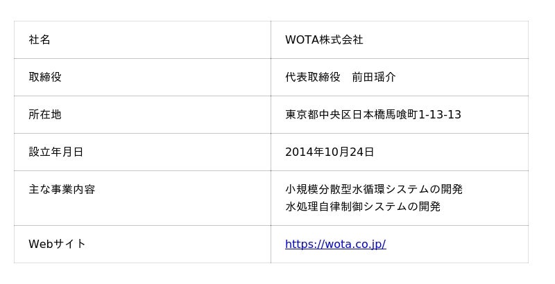 「はたらいて、笑おう。」をグループビジョンに掲げるパーソルホールディングス株式会社(本社:東京都港区、代表取締役社長 CEO:和田 孝雄)は、自律分散型の水循環システムを開発・提供する WOTA株式会社(代表取締役:前田 瑶介、以下「WOTA」)に対して出資を行いましたのでお知らせします。