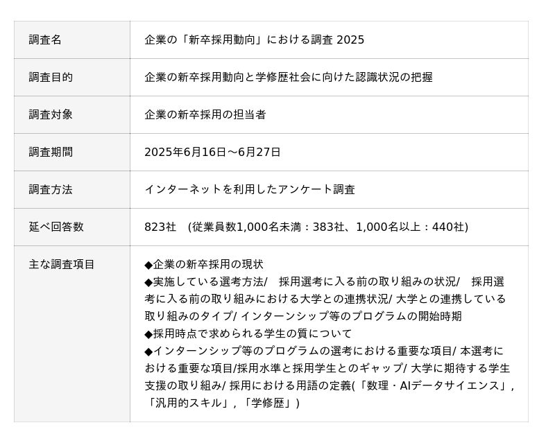 【『企業の「新卒採用動向」における調査 2025』調査概要】