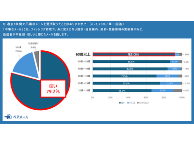 - ユーザの約8割(79.2%)が「過去1年間で不審なメールを受け取ったことがある」と回答。