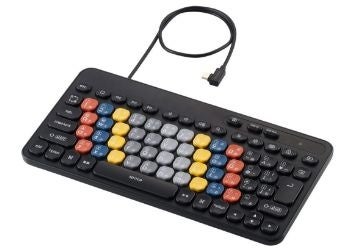 - 押し間違いによる混乱を避けるため、使用頻度の低い機能を取り除き、よりスムーズにキーボード操作を学習できるよう配慮。プログラミングやタブレット学習に特化した機能を盛り込んだ、独自の日本語配列(JIS)を採用しています。