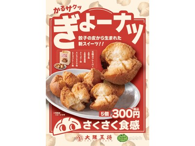 株式会社イートアンドホールディングス(東京ヘッドオフィス:東京都品川区 代表取締役社長:仲田浩康)は、事業会社の一つである株式会社大阪王将の餃子の皮の端切れや株式会社イートアンドフーズにて製造している冷凍餃子の皮の端切れを主原料に、グループ内でカフェ・ベーカリー事業を推進している株式会社アールベイカーにてドーナツ『ぎょーナツ』を製造、まずは「大阪王将」9店舗にて発売を開始いたします。
